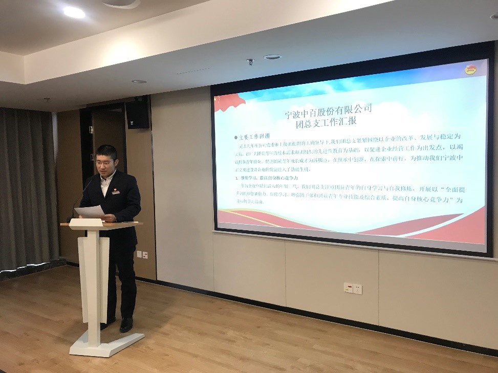 2018年11月20日,共青團(tuán)寧波中百股份有限公司總支委員會(huì)召開全體團(tuán)員大會(huì),進(jìn)行換屆選舉。會(huì)議在莊嚴(yán)肅穆的國歌聲中正式開始,團(tuán)總支書記陳佳琦代表上屆團(tuán)總支作工作報(bào)告。
